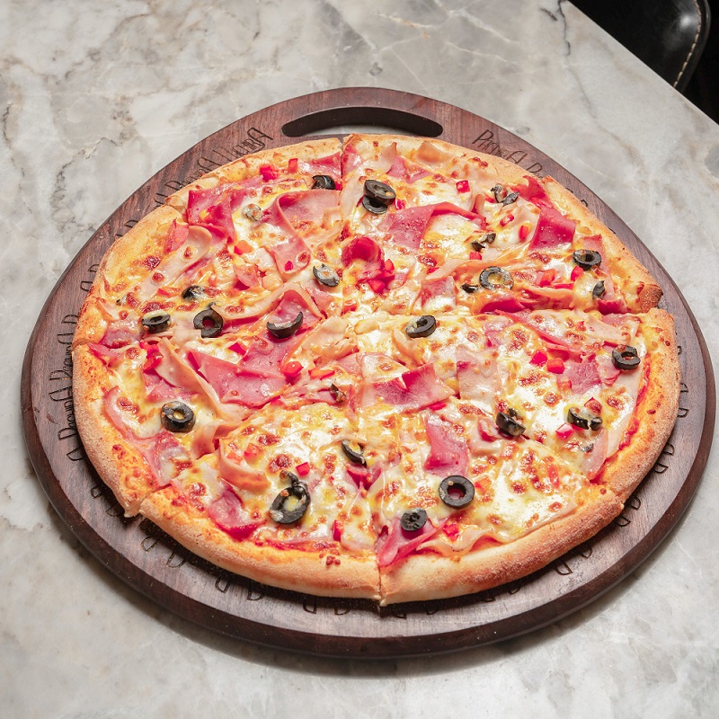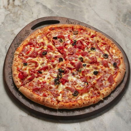 سس گوجه،بیکن گوشت.دلمه رنگی،زیتون سیاه، میکس پنیر