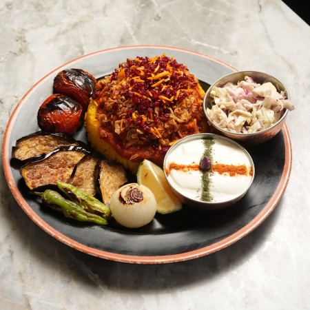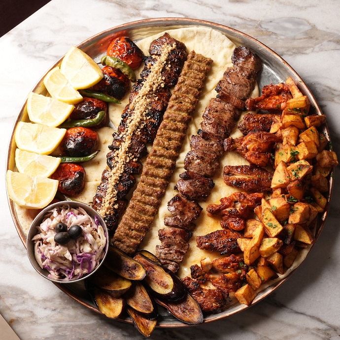 یک عدد پیده کباب - یک عدد پیده دانارستو - یک عدد پیده تاووک - زیتون سیاه - ماست مزه دار - سالاد کلم - سس کچاپ - کاهو